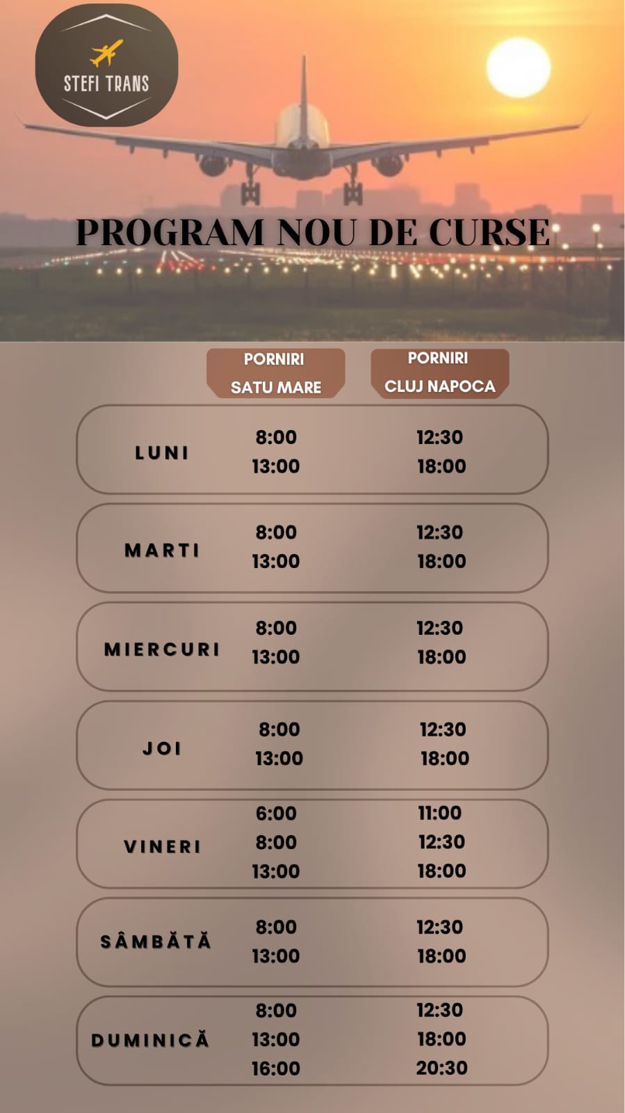 Noul Program de Curse Transfer Satu Mare - Aeroport Cluj